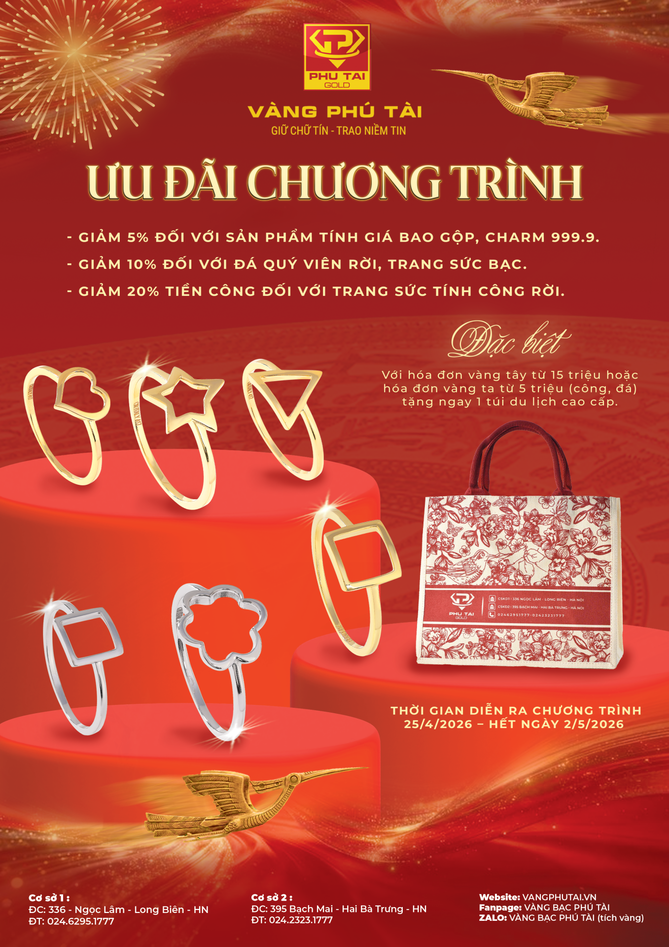 Với thông điệp “Giữ chữ tín – Trao niềm tin”, Vàng Phú Tài không ngừng mang đến những sản phẩm chất lượng cùng trải nghiệm mua sắm trọn vẹn cho khách hàng. Chương trình lần này không chỉ là ưu đãi, mà còn là lời tri ân dành cho sự tin tưởng và đồng hành của quý khách trong suốt thời gian qua.