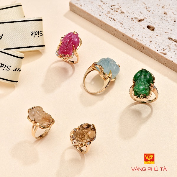 Ngoài vàng, Vàng Phú Tài còn mang đến bộ sưu tập trang sức gắn đá ngọc quý, ngọc trai, ngọc cẩm thạch. Đây là những loại đá quý không chỉ đẹp mà còn mang ý nghĩa phong thủy sâu sắc, tốt cho sức khỏe và tinh thần.